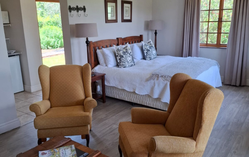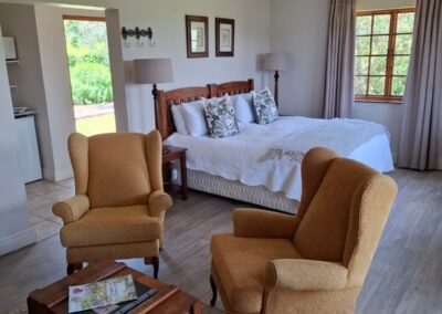 A cozy self-catering retreat, Bushman Cottage is perfect for two guests seeking comfort and tranquility. Featuring a plush king-size bed, an en-suite bathroom, and a warm lounge with a fireplace, it’s designed for relaxation. The well-equipped kitchenette adds convenience, while the serene surroundings make it an ideal countryside escape.